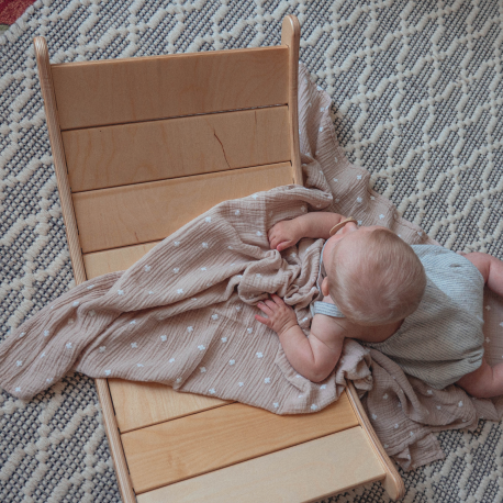 All of our finishing is done with child friendly and child safe materials. All Circles spray coats each piece in three steps, which includes a base coat, sanding and a finish coat, with proper drying time in between. We currently have three types of finishing; one for all of our climbers and furniture